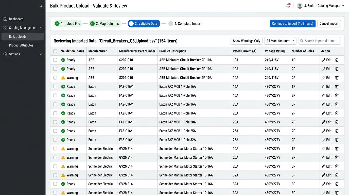 Start with one product family. Pick a 20-page Schneider or Eaton catalog section. Extract 50 SKUs using this workflow. Measure how many values you can trace back to source six weeks later versus your current process. If you can trace all 50, expand to the next family.