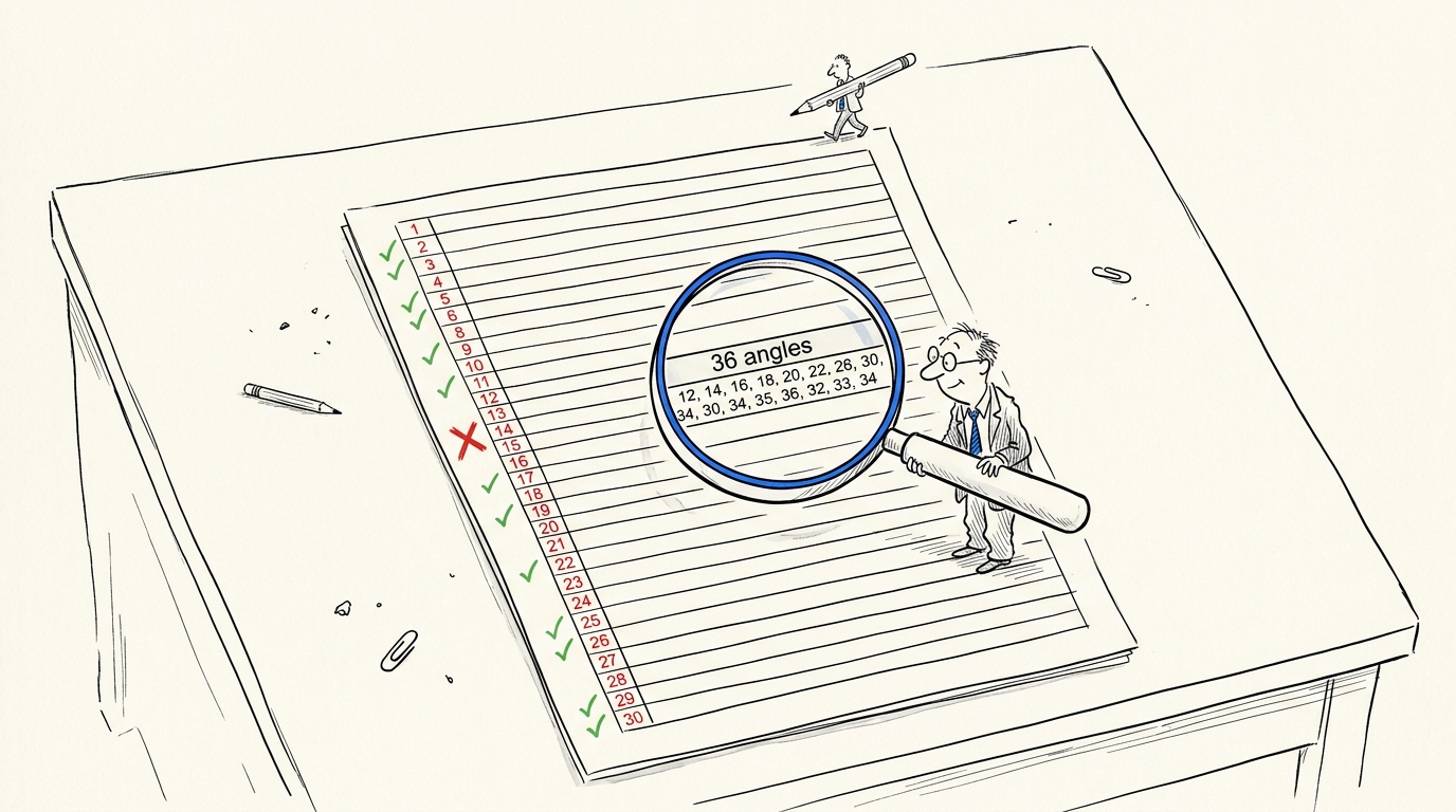 - Angle counts match actual arrays